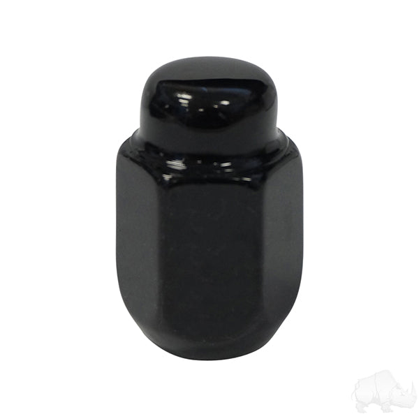 Lug Nut, Gloss Black Closed End Metric 12mm-1.25, OD 3/4"